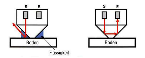 Füllstandsmessung auf transparente Flüssigkeiten, mit Lichtwellenleiter auch durch Glas
