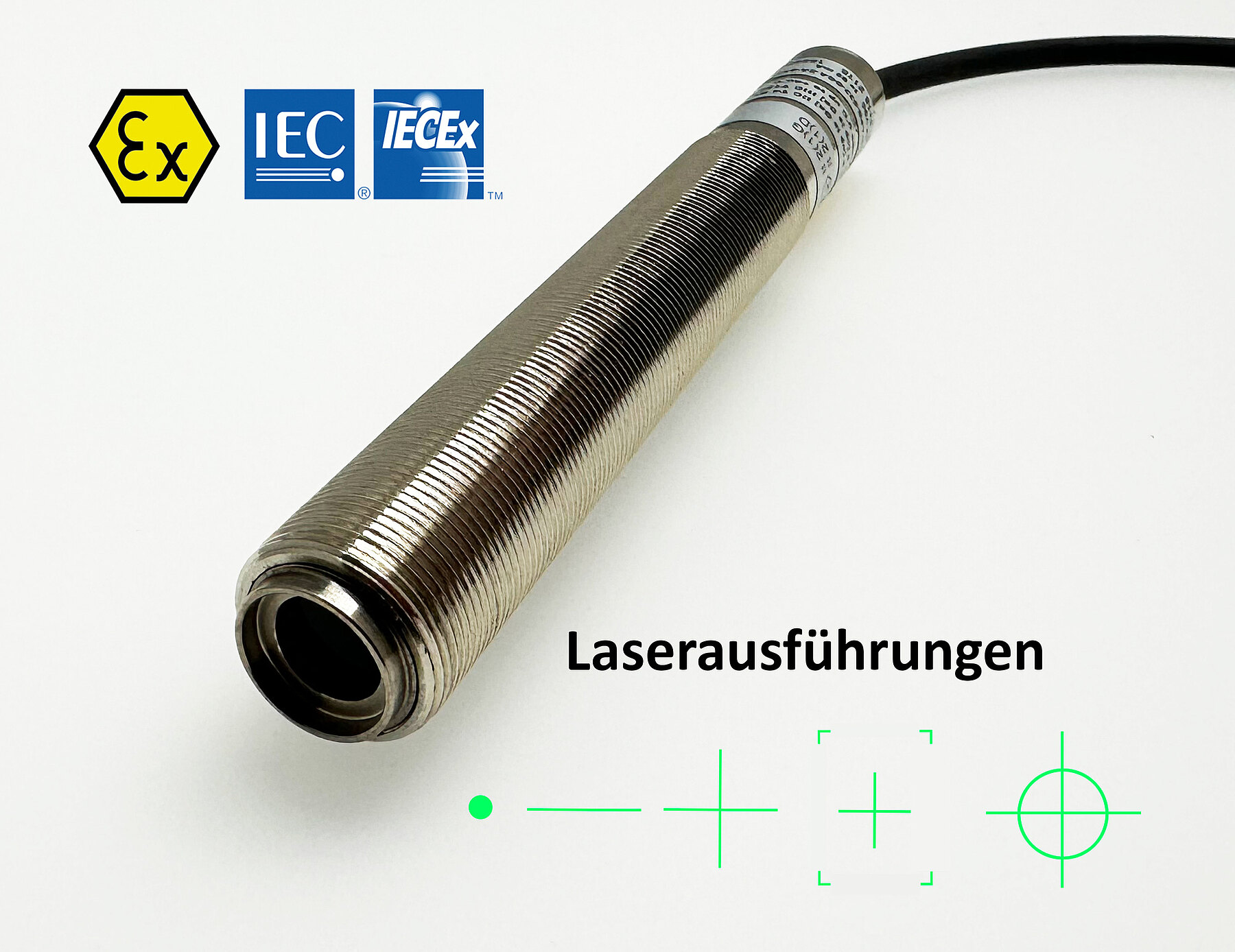 der Produktfamilie LPD/LPGDie explosionsgeschützten Laserpointer der Laserklasse 2 sind in den Laserfarbe grün erhältlich (Laserfarbe rot auf Anfrage).